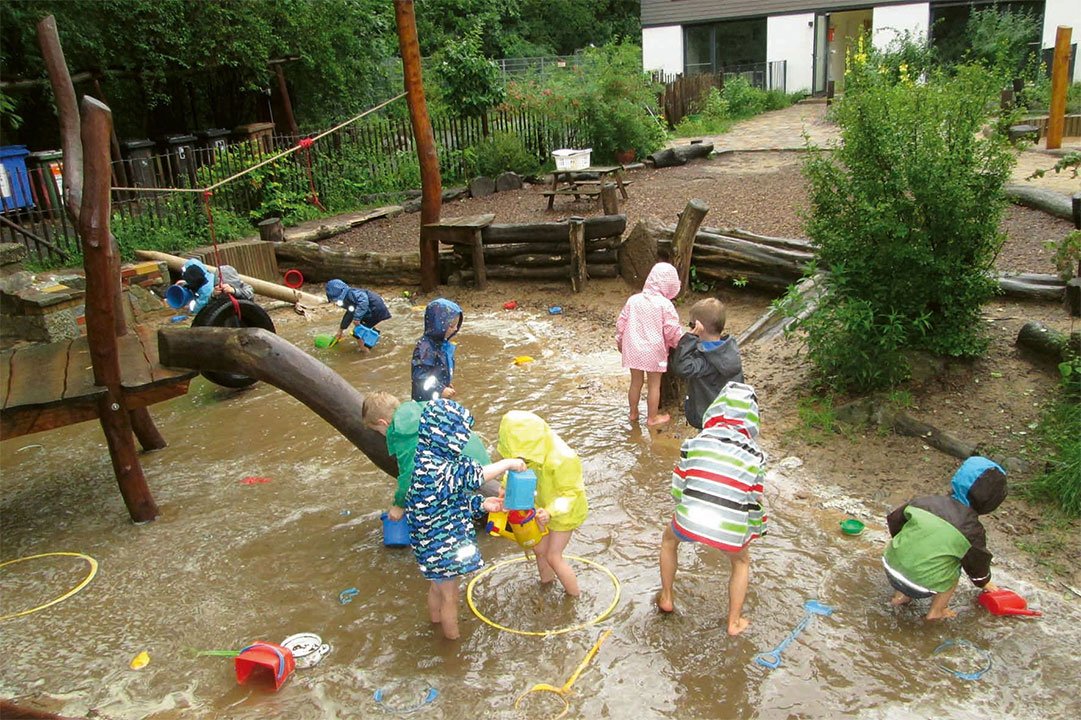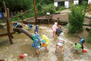 Ein wichtiger Schwerpunkt ist für uns die kreative und motorische Bildung. Unser anspruchsvoller Bewegungs-und Erlebnisgarten erfordert psychomotorisches und erlebnispädagogisches Knowhow, welches durch unsere Facherzieher*innen für Psychomotorik qualitativ eingebracht wird. Eine Bewegungsbaustelle im Haus mit anregendem Material zum Konstruieren und Bauen komplettiert dieses Angebot. Die Naturerfahrungen, die die Kinder durch den täglichen Aufenthalt im Garten erleben, sind besonders für Stadtkinder elementar und zudem gesundheitsfördernd. Besonders unser Gemüsegarten und die vielen Obstbäume ermöglichen eine naturnahe Erfahrungswelt.